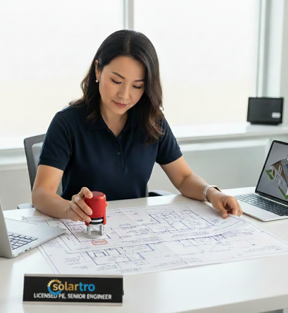At Solartro, we provide licensed PE stamping services across all 50 U.S. states—both structural and electrical—ensuring your solar, battery, and generator installations meet every code requirement and pass AHJ review the first time.